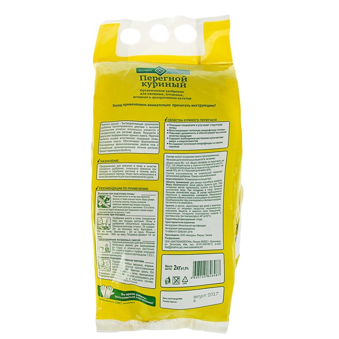 Куриный перегной гранулированный Долина Плодородия, 2 кг