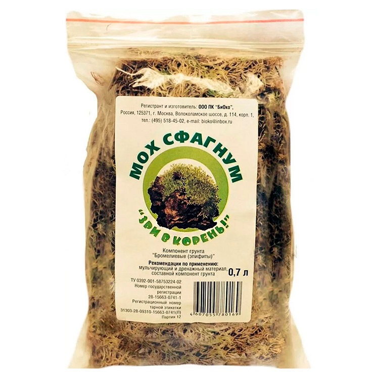 Мох сфагнум «Зри в Корень» – полностью натуральный материал, используемый для мульчирования почвы. Его главные свойства – хорошая водопроницаемость, воздухопроницаемость и антибактериальные свойства. Его нужно добавлять к растениям, которые требуют вышеперечисленных свойств почвы. Количество мха варьируется от типа растения и его почвы. Мох является безвредным для человека. Храните его в теплом месте, защищенным от солнечных лучей.