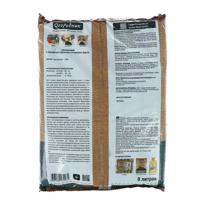 Состав: торф верховой – природный слаборазложившийся торф с высокой воздухо- и водопоглотительной способностью.