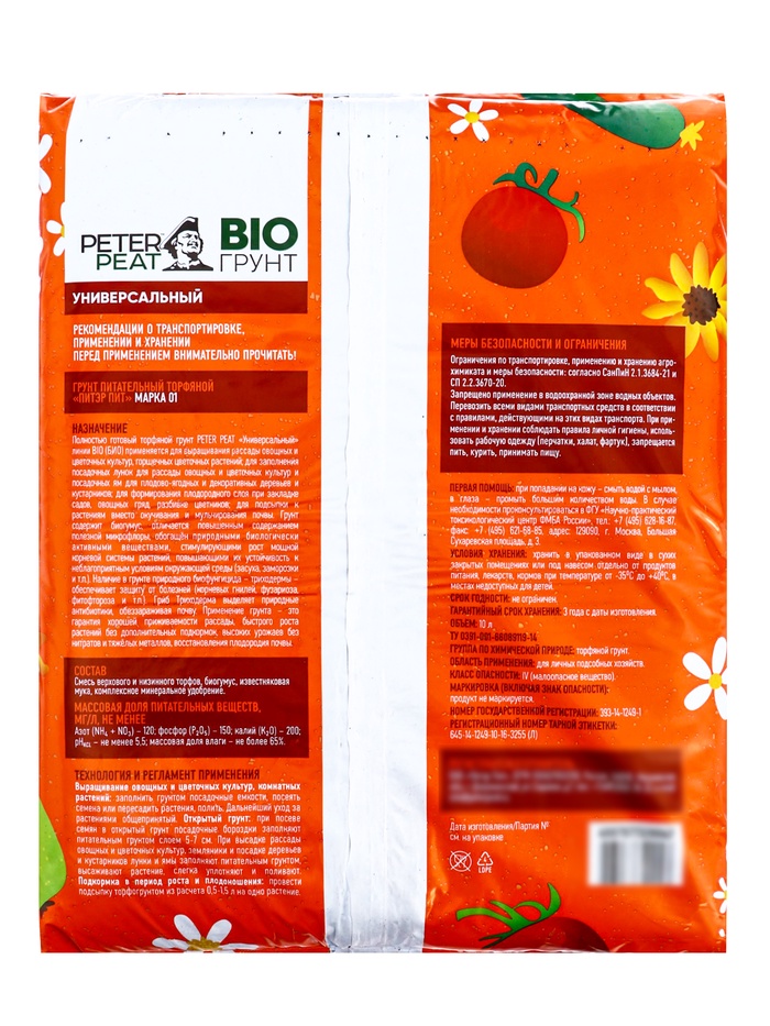 Применение: выращивание овощных и цветочных культур, комнатных растений: заполнить грунтом посадочные емкости, посеять семена или пересадить растения, полить. Дальнейший уход за растениями общепринятый.