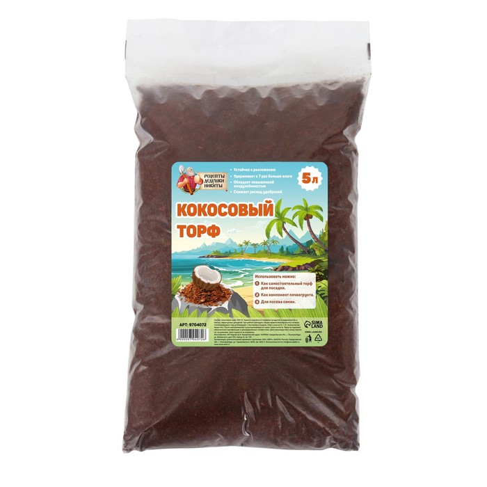 Кокосовый торф «Рецепты Дедушки Никиты», 5 л