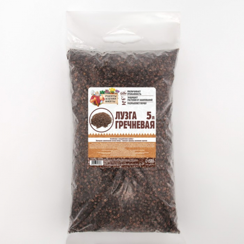 Полезное экологически чистое удобрение для участка. В своем составе лузга имеет такие элементы, как калий, фосфор, железо, магний и цинк, увеличивающие стрессоустойчивость и сопротивляемость растений грибковым и микробным заболеваниям. Вкусовые и питательные качества гречишной лузги привлекают дождевых червей, которые оказывают благоприятное влияние на плодородный слой почвы. Мульчирование гречишной лузгой позволяет сократить количество поливов и уменьшить колебания суточной температуры. Гречишная лузга позволяет снизить кислотность почвы, так как в процессе ее разложения происходит щелочная реакция.