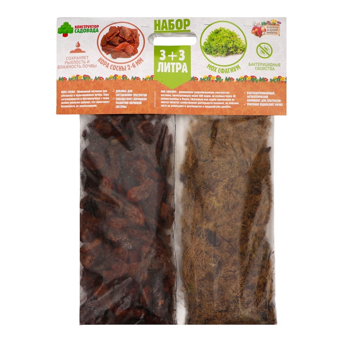 Набор для орхидей Кора сосны 2-6 фр + Мох сфагнум «Рецепты Дедушки Никиты» 3+3 л.