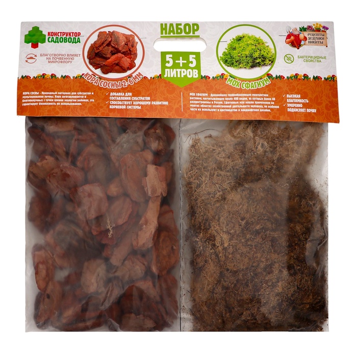 Набор для орхидей Кора сосны 2-6 фр + Мох сфагнум «Рецепты Дедушки Никиты» 5+5 л.