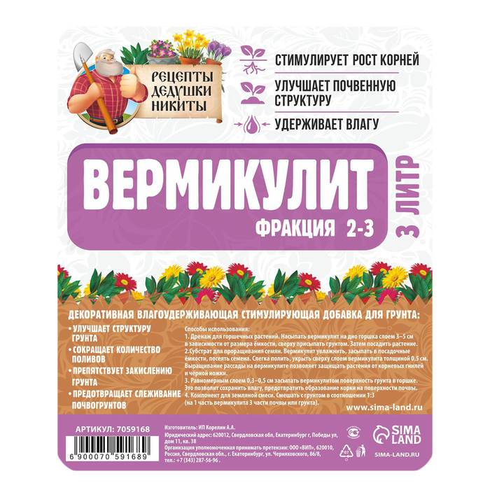 Вермикулит от ТМ "Рецепты Дедушки Никиты"