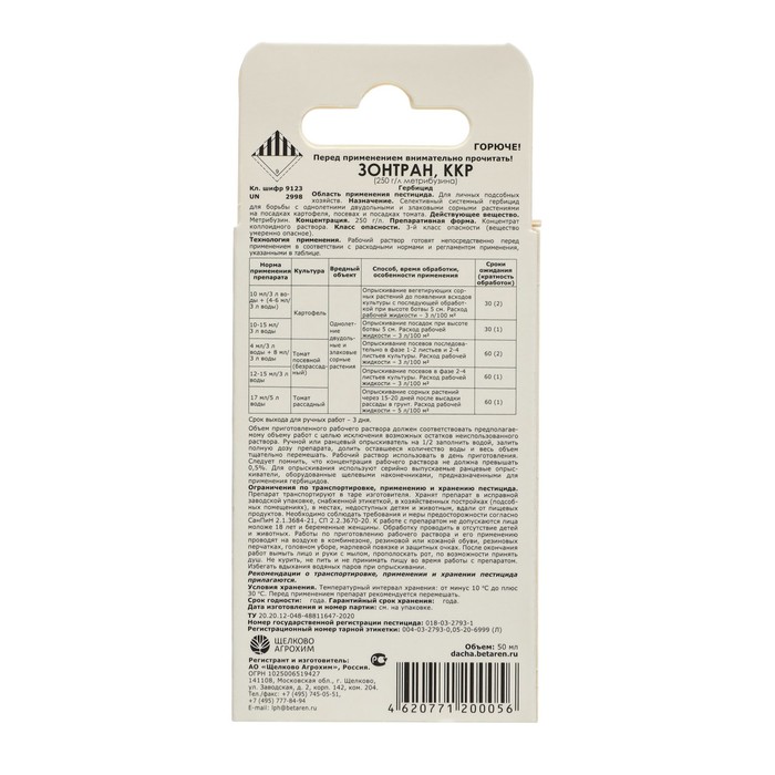 Средство для уничтожения сорняков на картофеле и томатах "Зонтран", флакон, 50 мл