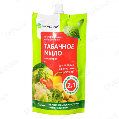 Безопасная защита. Табачное мыло оказывает губительное действие на насекомых- вредителей и возбудителей болезней, при этом абсолютно безвредно для человека и животных. Пленка, образующаяся благодаря «мыльным» компонентам средства, обеспечивает длительное действие и надежную защиту, а экстракт табака повышает эффективности препарата и расширяет спектр действия.