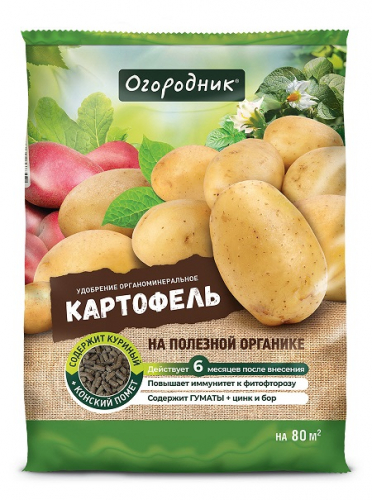 Комплексное бесхлорное гранулированное удобрение пролонгированного действия для картофеля и других корнеплодных культур на основе полезной органики.