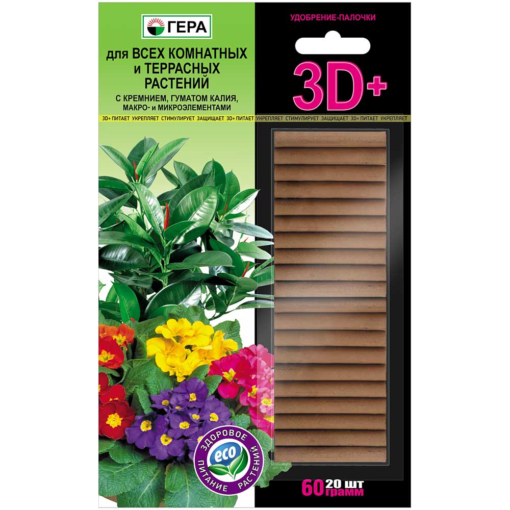 Удобрение-палочки 3D+ 60гр. д/комнатных и террасных растений ГЕРА х10