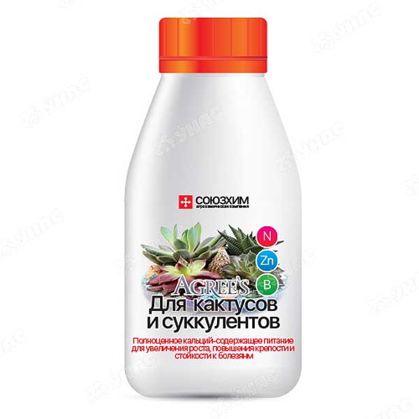Удобрение комплексное Agree's , для кактусов и суккулентов, 0,25 л. Полноценное кальций-содержащее питание для увеличения роста, повышения крепости и стойкости к болезням.