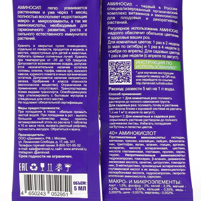 Удобрение жидкое Аминосил для роз, 5 мл