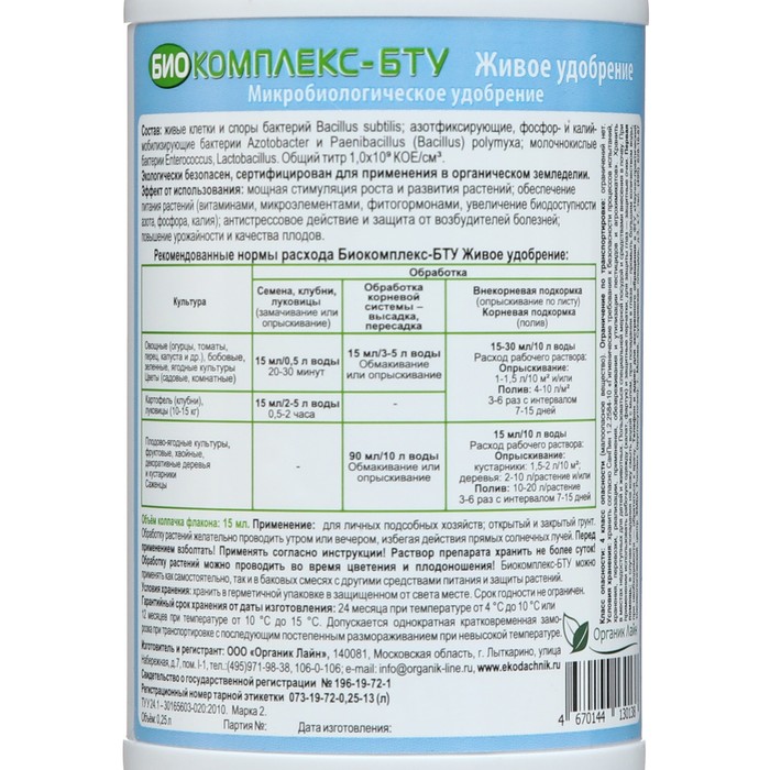 Универсальное Живое удобрение "Биокомплекс-БТУ", 0,25 л