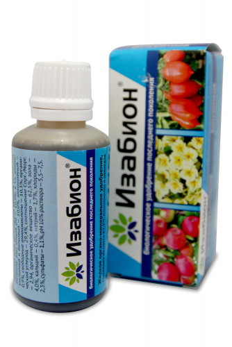 Ваше Хозяйство Изабион– жидкое органоминеральное удобрение, состоящее из смеси 62,5% аминокислот и пептидов. Удобрение увеличивает урожайность, обеспечивает лучшую завязываемость плодов, увеличивает их размер, улучшает товарный вид продукции и приживаемость, усиливает проникновение системных фунгицидов и инсектицидов внутрь растения, усиливая их действие.• Удобрение содержит полный комплекс веществ, необходимых для полноценного и сбалансированного питания растений.