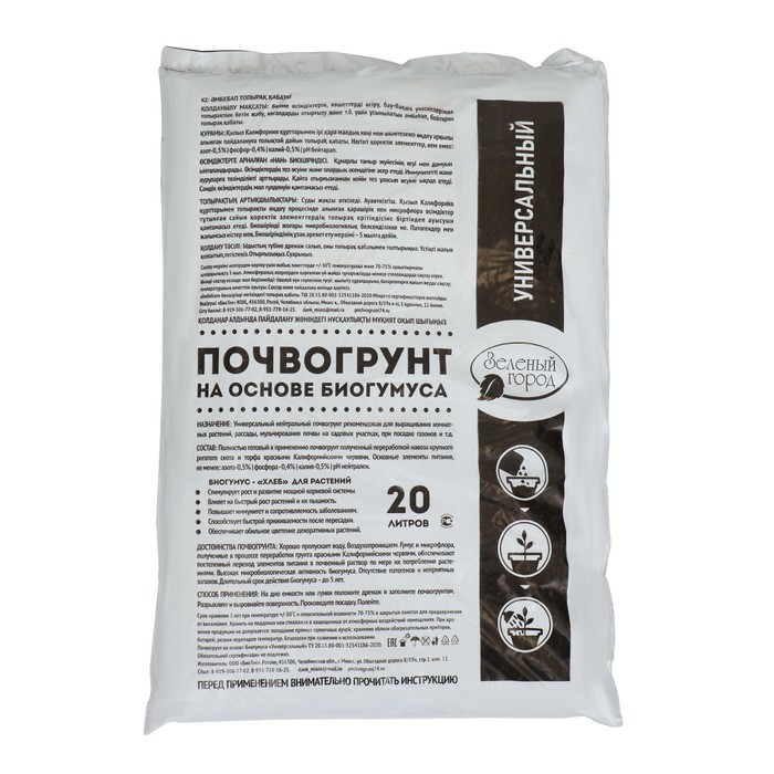 Почвогрунт на основе Биогумуса Универсальный, Зеленый город, 20 л