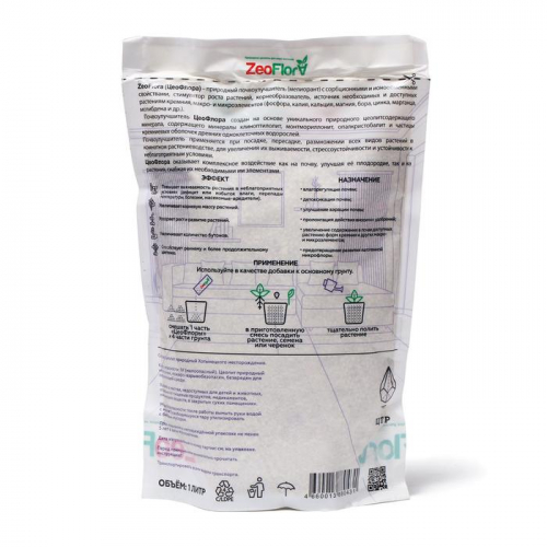 * Регулирует количество влаги: не даёт корнеобитаемой зоне растения ни переувлажниться ни пересохнуть. При внесении удобрений гранулы Zeoflora аккумулируют их и постепенно отдают растению по мере необходимости.