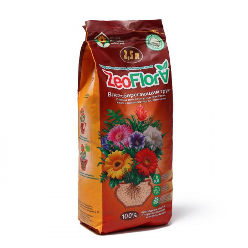Субстрат минеральный ZeoFlora для растений, цеолит, почвоулучшитель, 2.5 л, влагосберегающий грунт, фракция 1-3 мм
