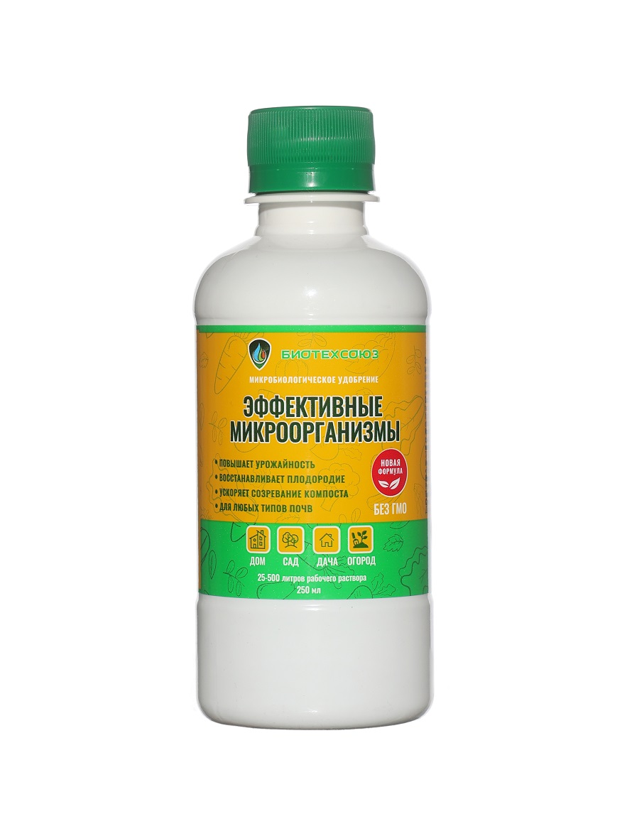 ЭФФЕКТИВНЫЕ МИКРООРГАНИЗМЫ БИОТЕХСОЮЗ предназначено для повышения плодородия почв и выращивания экологически чистых продуктов питания.