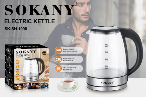 Чайник электрический Sokany SK-SH-1098 стекло/сталь