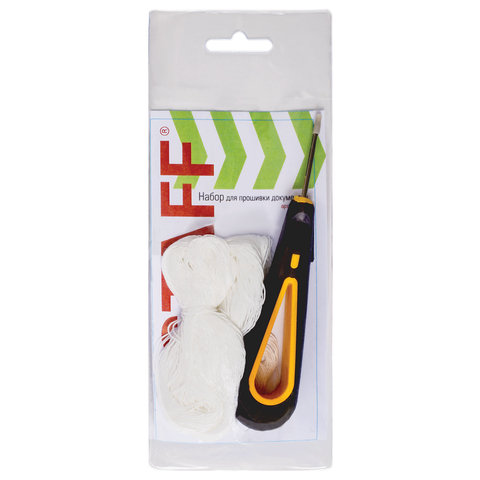 Набор для прошивки документов (шило с ушком, нить 60 м), в блистере, STAFF, 605383