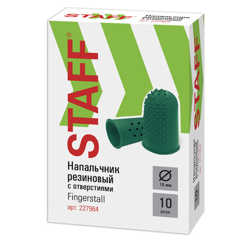 Напальчники резиновые с отверстиями, КОМПЛЕКТ 10 шт., диаметр 18 мм, зеленые, STAFF "EVERYDAY", 227964