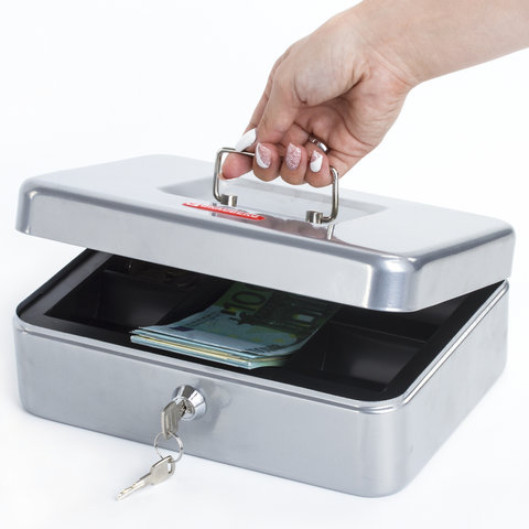 Ящик для денег, ценностей, документов, печатей, 90х180х250 мм, ключевой замок, серебристый, BRAUBERG, 291059