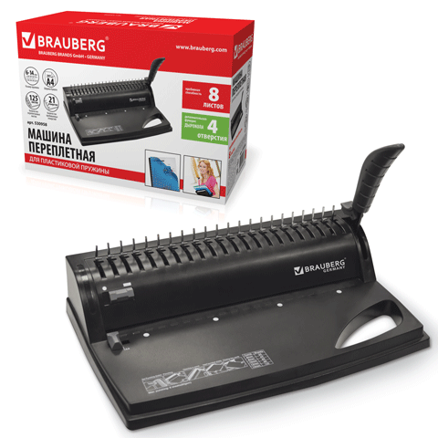 Брошюровщик BRAUBERG "B8" пластиковая пружина, перфорация 8 л., переплет 125л. 530958