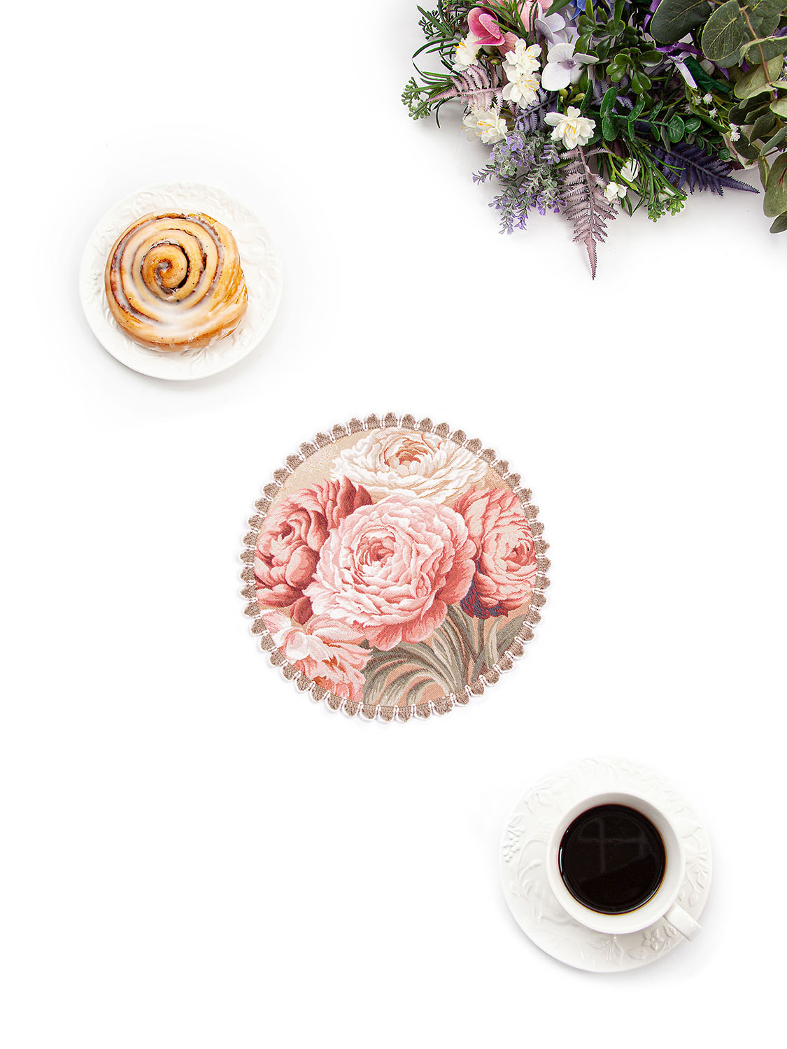 Английский сад Пионы Салфетка круг д37 см Золото 2517492
