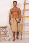 Набор мужской трехпредметный (килт, рукавичка, шапочка) для бани/сауны б/р, цвет: 022-Бежевый