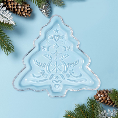 Новогоднее настроение начинается со стола. Фигурное стеклянное блюдо с новогодней тематикой — готовое украшение для праздничного интерьера.