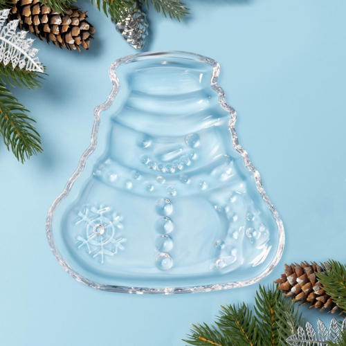 Новогоднее настроение начинается со стола. Фигурное стеклянное блюдо с новогодней тематикой — готовое украшение для праздничного интерьера.