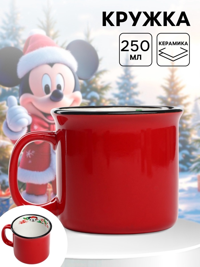 Новогодняя керамическая кружка 250 мл — яркая и уютная, с красным корпусом и принтом Микки Маус внутри. Идеально подходит для тёплого какао, чая или кофе в зимние дни. Качественная керамика, удобная форма, стильный дизайн. Отличный подарок на Новый год для детей и поклонников Disney. Наполните праздник волшебством — пусть каждый глоток будет с настроением детства и зимнего чуда!