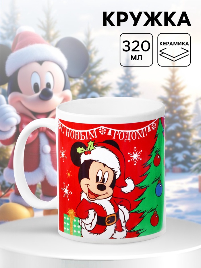 Керамическая кружка 320 мл с новогодним дизайном и принтом Микки Маус — уютный аксессуар в праздничной атмосфере. Из качественной керамики, удобно ложится в руку, подходит для чая, какао или кофе. Идеальна для дома, офиса или в подарок. Пусть каждый глоток приносит тепло, радость и предвкушение чуда — настоящий праздник начинается с любимого героя!