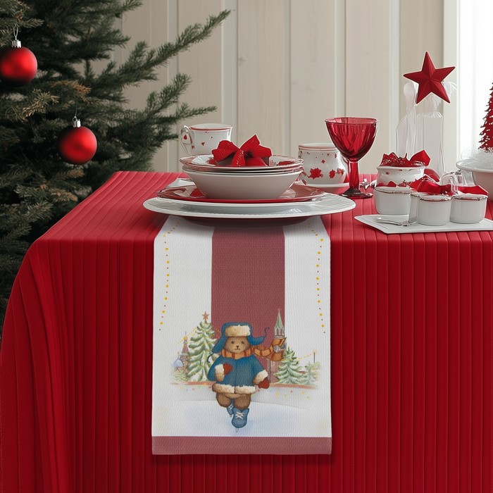 Добавьте волшебство в ваши праздничные застолья с изысканной дорожкой «Московский мишка» от Доляна. Эта яркая новогодняя дорожка станет настоящим украшением вашего стола, благодаря своему элегантному дизайну и захватывающему узору, пропитанному духом зимних праздников.
