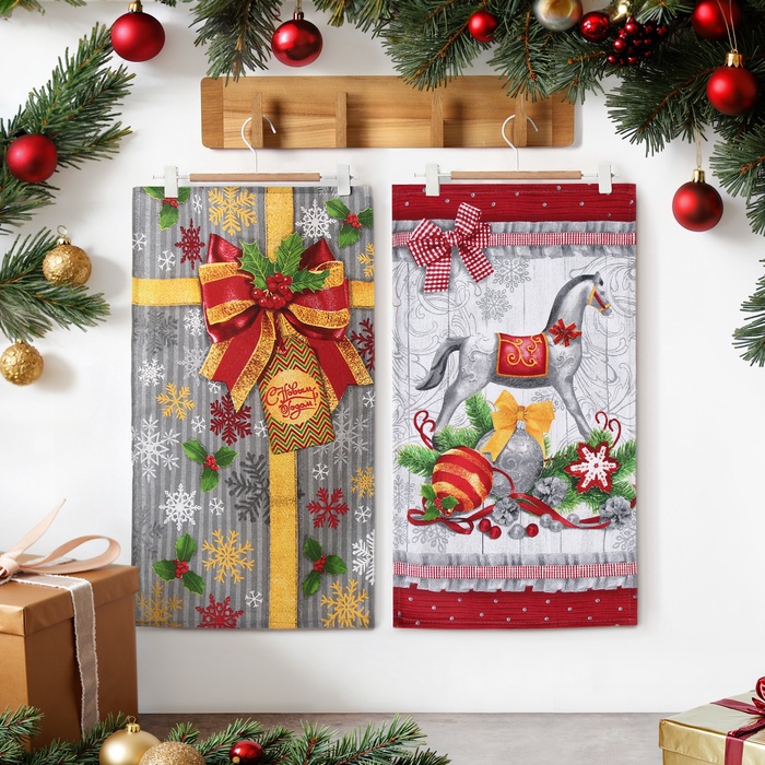 Набор кухонных полотенец Доляна «Новогодние игрушки » 35×60 см-2 шт., 100% хл