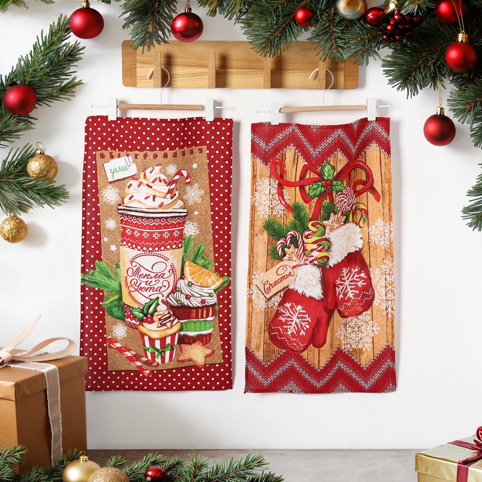 Набор кухонных полотенец Доляна «Тепла и уюта» 35×60 см-2 шт., 100% хлопок