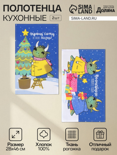 Набор кухонных полотенец «Доляна. Веселье», 28×46 см - 2 штуки, 100% хлопок, рогожка 164 г/м²