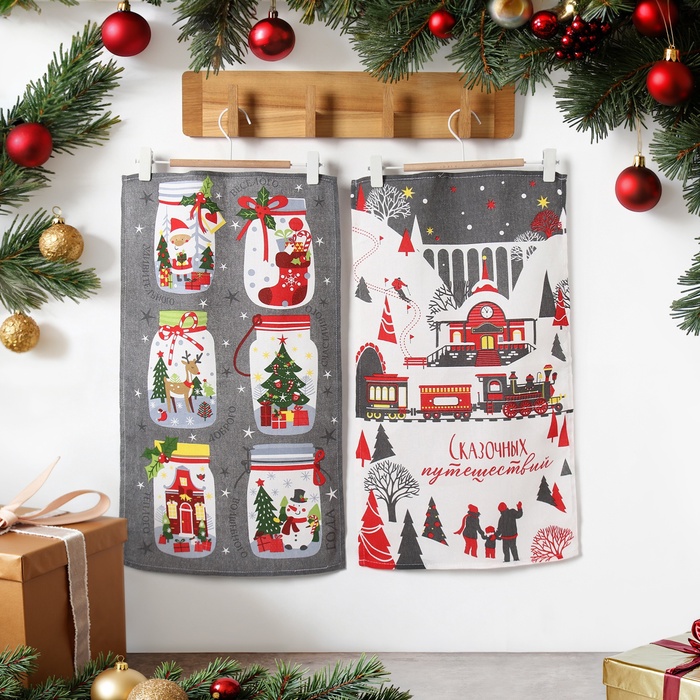 Набор новогодних кухонных полотенец Доляна «Волшебного года» 35×60 см-2 штуки, 100% хлопок