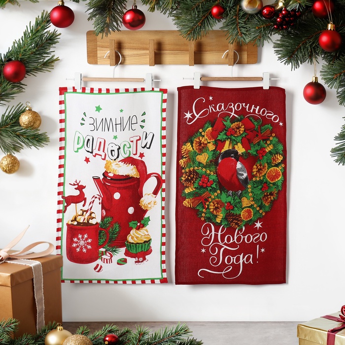 Набор кухонных полотенец Доляна «Зимние радости» 35×60 см-2 шт., 100% хлопок