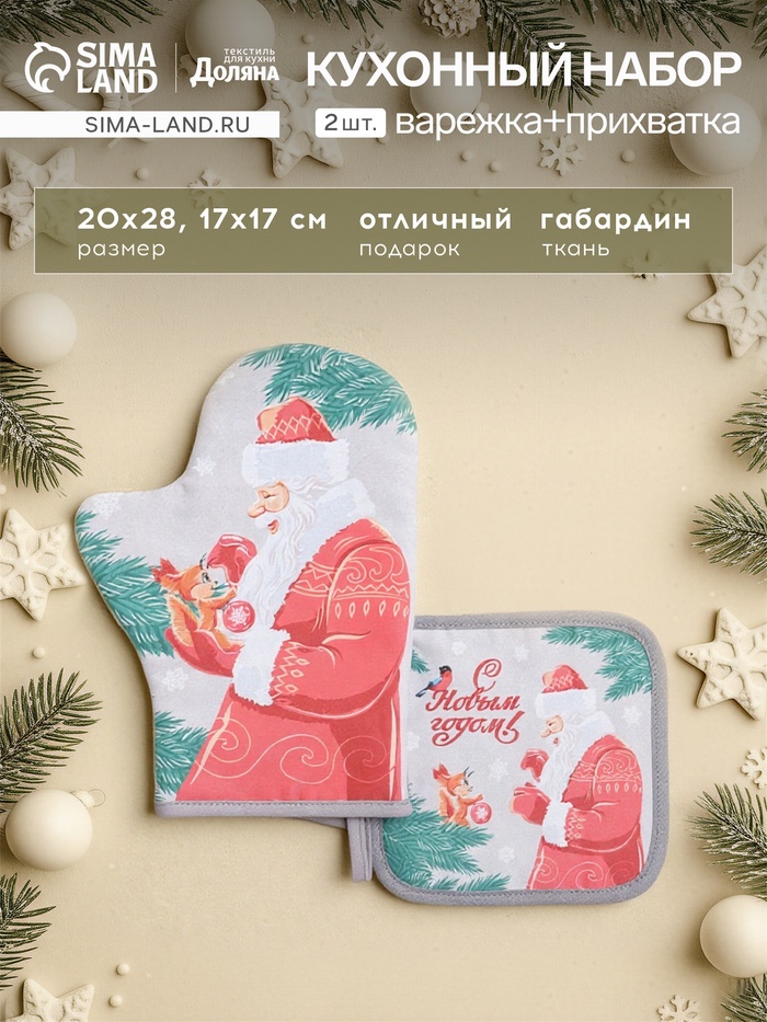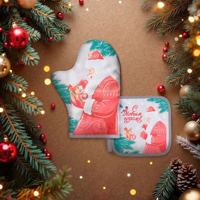 Набор кухонный «Доляна. С новым годом»: прихватка 17×17 см, варежка-прихватка 20×28 см, 35% хлопок