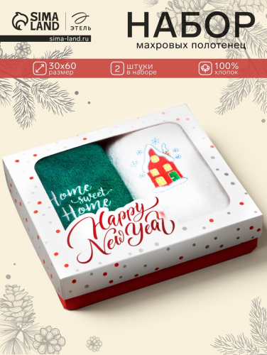 Набор полотенец Доляна «Новогодние пожелания» 28×46 см - 2 шт., 100% хл, вафля 160 г/м²