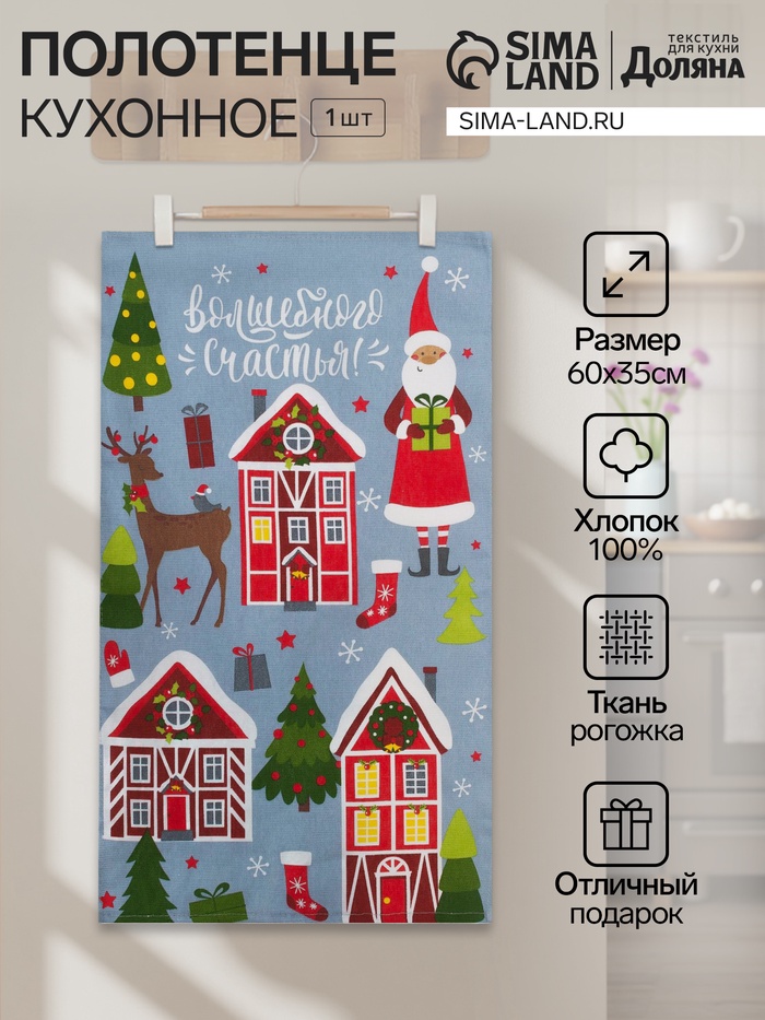 Полотенце кухонное «Доляна. Волшебного счастья», 35×60 см, хлопок 100%, 160 г/м²