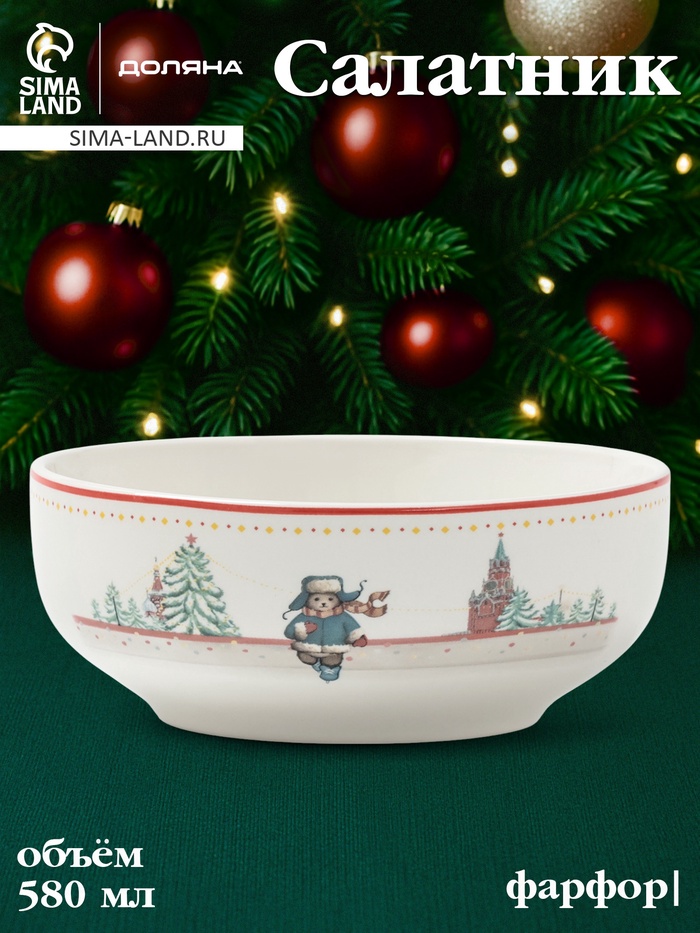 Салатник новогодний Доляна «Московский мишка», 580 мл, 15.5×6 см, фарфор, белый