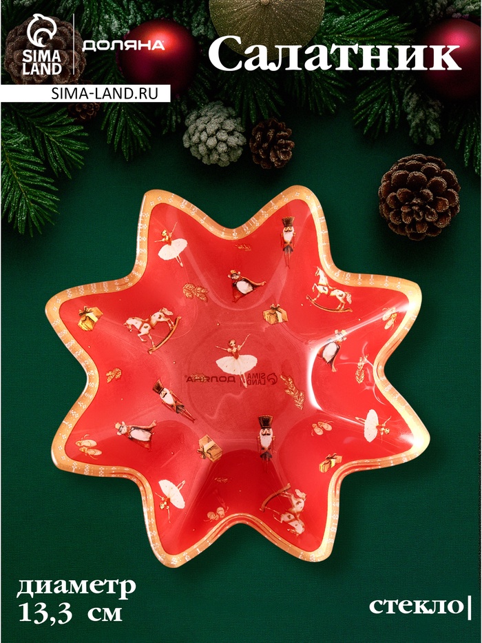 Новогодний салатник в форме звезды в красном цвете идеально подойдет для подачи салатов или закусок так, чтобы гости сразу почувствовали атмосферу Нового года.