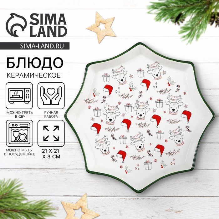 Блюдо керамическое «Новогодние олени» — идеальный выбор для сервировки праздничного стола.