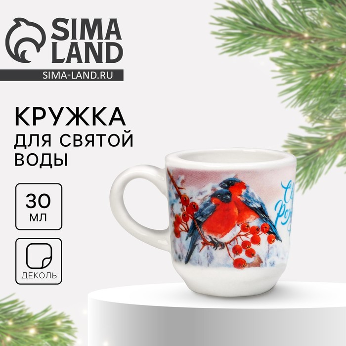 Кружечка – сделана из керамики. Кружка сувенирная, небольшая подходит для святой воды. Наша кружечка станет хорошим подарком на Рождество и другие православные праздники себе и близким.