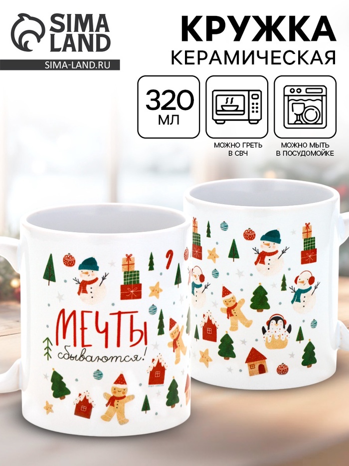 Кружка новогодняя керамическая «Мечты сбываются», 320 мл