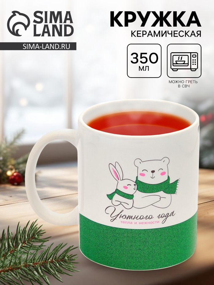 Новогодняя керамическая кружка объемом 350 мл создана для того, чтобы наполнить ваши зимние вечера теплом и праздничным настроением. Изготовленная из качественной керамики, она прекрасно сохраняет температуру напитка, будь то ароматный глинтвейн, горячий шоколад или любимый чай с мандариновыми нотками.