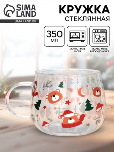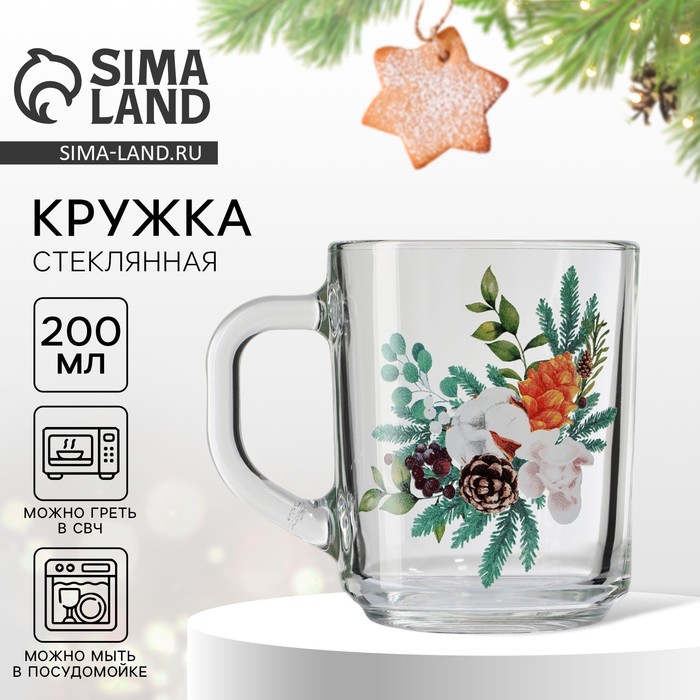 Кружка новогодняя стеклянная «Новогодний букет», 200 мл