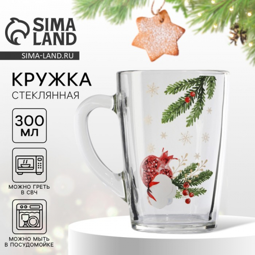 Стеклянная новогодняя кружка объёмом 300 мл — это стильный и практичный аксессуар для вашей кухни или офиса.
