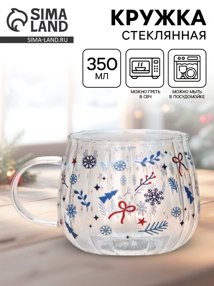 Кружка новогодняя стеклянная «Новогодний паттерн», 350 мл